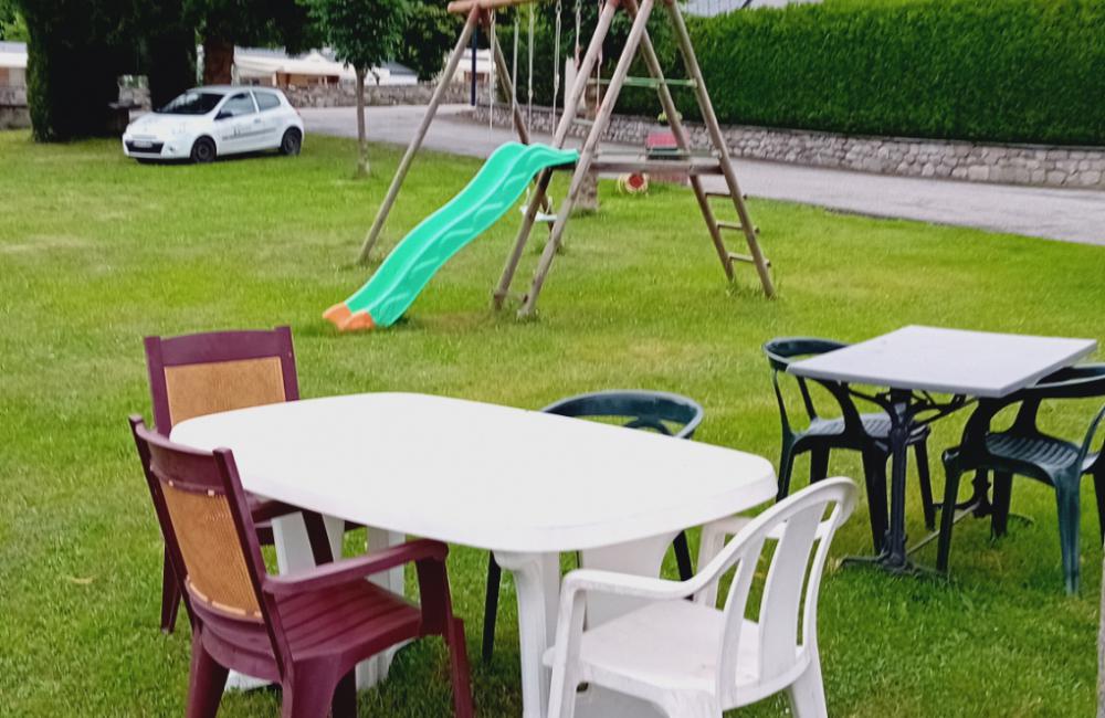classé 2 étoiles, parking n°4, comprenant, entrée, wc indépendant, salle d'eau, cuisine/repas, chambre avec 2 lits en 80 ou lit en 160cm, donnant sur balcon plein sud, salon avec clic clac , T.V.? armoire de rangement. Propriété entourée d'une grande prairie avec jeux et salon de jardin accessible aux vacanciers.